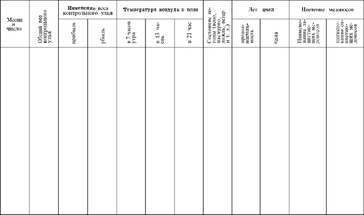 Сила взятка. Для учета силы взятка на весах постоянно держат контрольный улей и каждый вечер по окончании лета пчел взвешивают его. Если вес контрольного улья уменьшился, значит взятка нет совсем. Если вес его остался неизменным, это указывает на наличие маленького взятка, покрывающего суточную потребность семей в корме. Увеличение веса контрольного улья указывает на то, что есть более или менее сильный взяток, дающий пчелам возможность накапливать в улье мед.